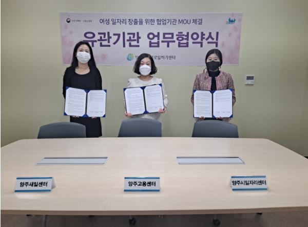 양주시는 지난 8일 국민취업지원제도의 연계·협업체계 구축을 위해 양주시일자리센터, 양주여성새로일하기센터(이하 양주새일센터), 양주고용복지플러스센터 3자간 업무협약을 체결했다고 밝혔다.
