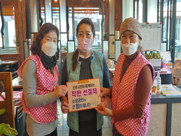 진주시여성자원봉사대(대장 정옥순)가 ‘착한 선결제 캠페인’에 적극 동참해 얼어붙은 지역 상권에 온기를 불어 넣었다.