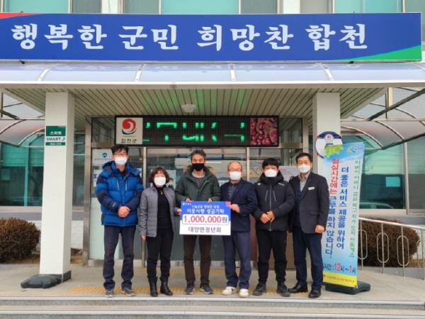합천군 대양면청년회가 11일 대양면사무소를 찾아 이웃돕기 성금 1백만 원을 기탁했다.