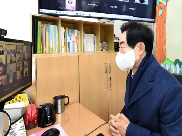 안병용 의정부시장은 1월 11일 원격 수업이 진행된 솔뫼초등학교를 방문해 온라인 원격수업을 참관하고 교사와 교직원 등을 격려했다.
