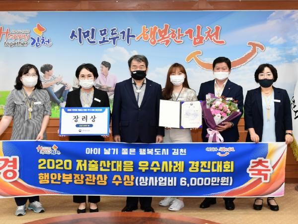 또한 지방인구가 전국적으로 감소하고 있는 어려운 상황 속에서도 행정안전부 주관 저출산대책 우수사례경진대회에서 김천시의 특성을 반영한 “산모 아기돌봄 100일 대작전”사업이 장관상을 수상함으로써 저출산 극복을 위한 노력을 인정받았다.