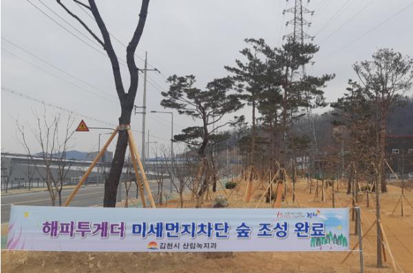 김천시는 일반산업단지 완충녹지 구역에 정부의 그린뉴딜 정책의 일환으로 시행하는 미세먼지 차단숲을 조성 완료하였다고 밝혔다.
