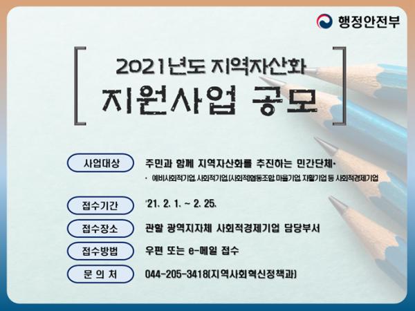 도내 사회적경제기업을 대상으로 한 2021년 지역자산화 지원사업을 오는 2월 25일까지 공모한다.