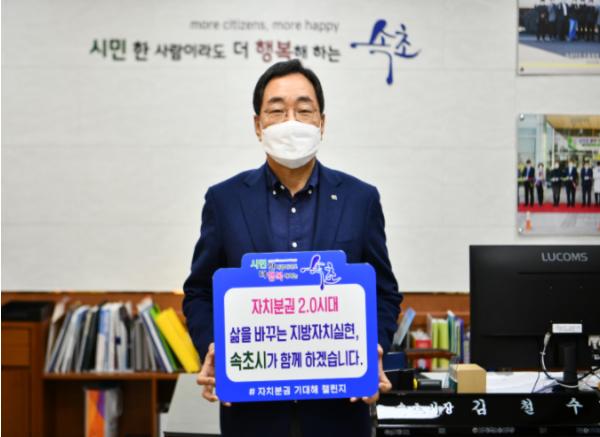 김철수 속초시장이 12일 ‘자치분권 기대해 챌린지’에 동참했다.