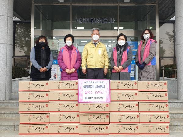 추운날씨와 코로나19 장기화로 얼어붙은 우리 이웃들의 마음을 조금이나마 녹여드리고자 쌀국수 25박스를 기탁했으며, 기탁물품은 계성면 관내 등록경로당 및 독거노인공동거주시설 25개소에 희망이장을 통해 전달될 예정이다.