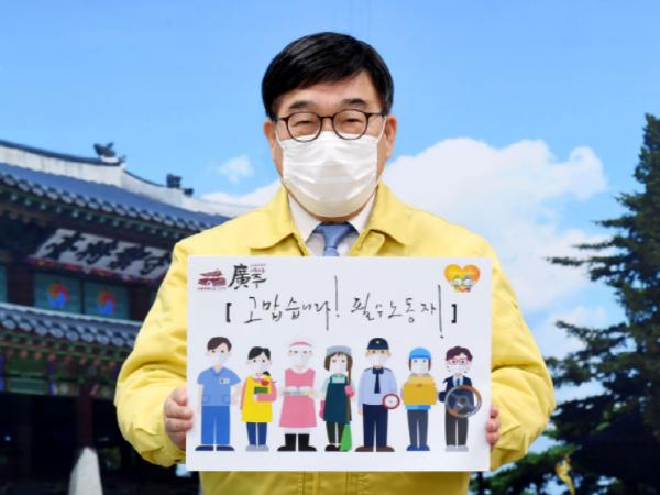 광주시 신동헌 시장은 12일 코로나19 위기 상황에서 대면 노동에 종사하는 필수노동자들에게 감사와 응원을 전하는 ‘고맙습니다. 필수노동자’ 캠페인에 동참했다.