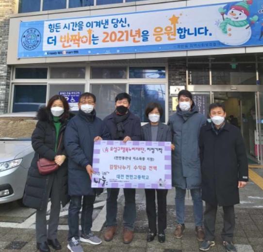 대전광역시 유성구 전민동은 12일 동 행정복지센터에서 대전전민고등학교가 저소득 가정을 위한 후원금 140여만 원을 유성구행복누리재단에 기탁했다고 밝혔다.