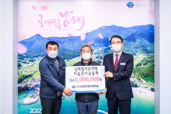 ㈔남해군향토장학회(이사장 장충남)는 남해멸치유자망 자율관리공동체(위원장 김환주)에서 500만의 장학금을 기탁했다고 밝혔다.