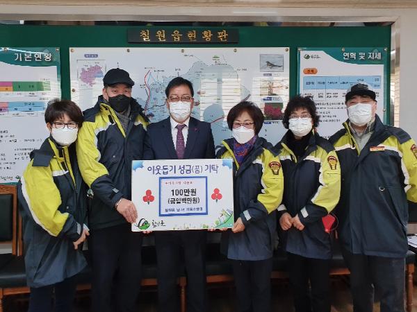 함안군 칠원읍남녀의용소방대(대장 이근엽·공영제)는 지난 8일 칠원읍사무소를 방문해 새해를 맞아 도움이 필요한 이웃들을 위해 100만 원의 성금을 기탁했다.