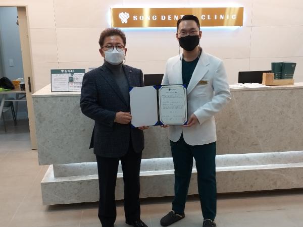 한국자유총연맹청주시지회와 송치과의원 의료복지 업무 협약으로 상호 협력 체계를 구축하고 상생 발전을 위해 서로 노력하기로 했다.
