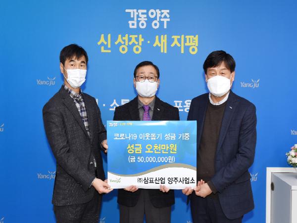 ㈜삼표산업 양주사업소, 양주시에 코로나19 이웃돕기 성금 기부
