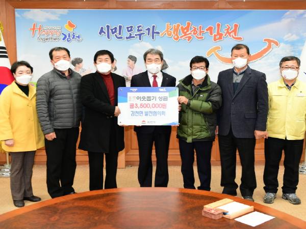 감천면 발전협의회는 동절기를 맞아 어려운 소외계층 지원을 위해 써달라며 김천시에 이웃돕기 성금 350만원을 기부했다.