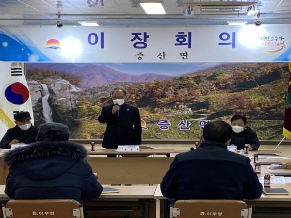 증산면에서는 11일 14시 각 이장 및 관내 유관기관장 등 20여 명이 참석한 가운데 올해 첫 이장회의를 개최하였다.