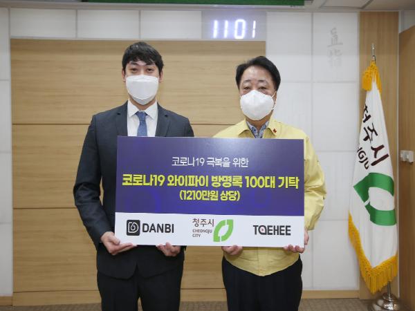 벤처기업 ㈜단비코리아가 12일 오전 11시 시청 직지실에서 와이파이 방명록 시스템 공유기 100대를 기탁했다.