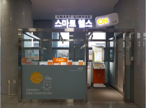 ▲스마트 헬스케어는 업무 시간에 병원 이용이 쉽지 않은 근로자 건강관리 지원을 위해 산업단지 내 실내와 이동형 헬스케어 부스를 설치해 근로자 스스로 건강상태를 측정할 수 있는 무인 자가 건강 측정 서비스를 제공한다. 보건소와 연계해 혈당 체크와 측정 데이터 기반의 건강관리 상담 서비스도 지원한다.
