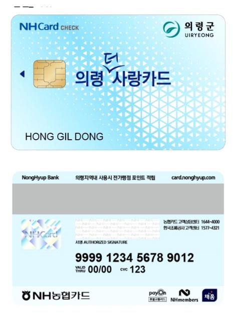 ‘의령더사랑카드’는 선불형 체크카드 형태로 스마트폰 앱(APP) ‘지역상품권 chak(착)’이나 관내 농·축협 20개 판매대행점에서 1인당 월 최대 50만원까지 발급 신청이 가능 하다.