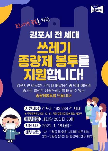 김포시가 전국 최초로 전 세대에 생활폐기물 종량제 봉투를 무상 지급한다.