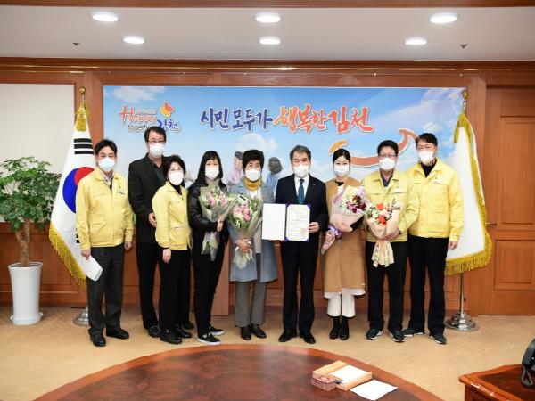 김충섭 김천시장은 “코로나19로 힘든 와중에도 불구하고 지역사회에 많은 공헌을 해주신 박복순 대표님께 수상의 쾌거를 이룬데 대해 감사와 축하의 말씀을 전한다”며, 우리시에서도 코로나19로 어려운 소상공인들을 위한 다양한 정책적 수단을 강구하여 이번위기를 잘 극복할 수 있도록 최선을 다하겠다“고 말했다.