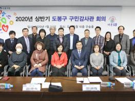 2020년부터는 코로나19라는 어려운 여건이었지만, 구민감사관은 사명감을 갖고 코로나19 예방활동 지원과 풍수해 예방을 위한 빗물펌프장 및 배수시설 점검 등 도봉 구정의 발전을 위해 열성적으로 감사 활동을 수행하였다.