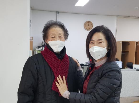 목도리와 손 편지를 받으신 한 어르신은 “코로나19로 집에만 있어 너무 답답하고 우울했는데 나를 위해서 누군가 이런 선물을 손수 만들어주다니 감동이다. 그 분께 감사하다는 말은 꼭 전해달라”고 말했다.