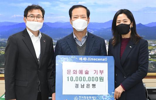 이날 기부금을 전달한 경남은행은 2007년부터 설립 및 운영 중인 경남메세나협회의 회장사로서 경남지역 기업의 문화를 통한 사회공헌을 확산시켜 문화예술의 발전과 도민의 문화복지 향상에 기어코자 노력을 하고 있으며,