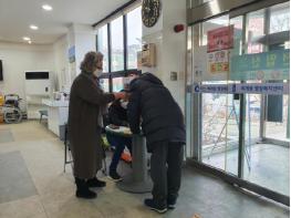 퇴계동 통장들은 하루에 4명씩를 조를 편성해 희망일자리 인력이 배치될 2월 중순경까지 청사 입구에서 방문 민원인을 대상으로 발열 확인과 명부 작성을 안내한다.