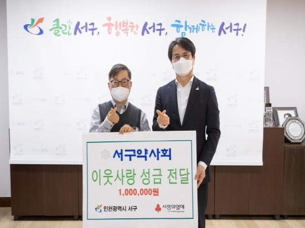 인천 서구는 지난 12일 서구 약사회(회장 이좌훈)가 서구에 이웃돕기 성금 100만 원을 전달했다고 밝혔다.
