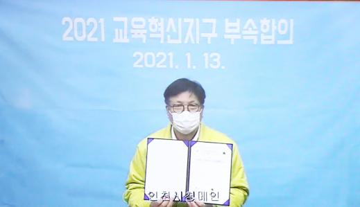 인천 중구는 13일 인천시교육청과 코로나 19 상황 속‘삶에 힘’이 자라는 학생들의 건강한 삶을 만들어 주기 위한『2021 교육혁신지구 부속합의』를 체결했다고 밝혔다.