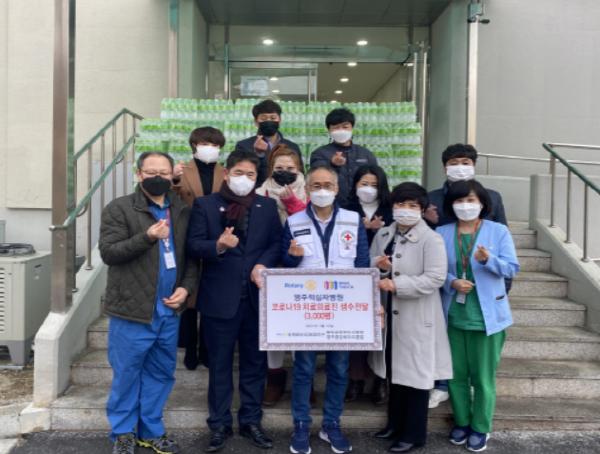 영주시 영주적십자병원은 1월 12일 영주중앙 및 봉화솔향로타리클럽이 코로나19 환자 치료에 헌신하고 있는 의료진을 위해 생수 3,000병을 전달했다고 밝혔다.