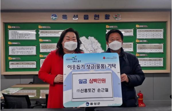 충북 음성군 음성읍 소재 ㈜신흥토건(대표 손근철)은 13일 음성읍 행정복지센터를 방문해 어려운 이웃을 위해 써달라며 음성읍 지역사회보장협의체에 성금 300만원을 전달했다.