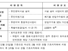 먼저, ’폐기물처리시설 설치촉진 및 주변지역 지원 등에 관한 법률‘에 따라 지역주민 복지 지원을 위해 시설 설치 사업비의 20% 이내에서 주민편익시설을 설치·제공하며, 매년 반입수수료의 20% 이내의 주민지원기금을 조성하여 주변 영향지역 내 주민에게 지원한다.