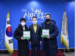 구리시 드림스타트는 지난 12일 16시에 구리시청 3층 민원상담실에서 안승남 시장, 다비치안경 구리점 박성동 대표, 다비치안경 구리교문점 김운선 대표 등 관계자 5명이 참여한 가운데, 드림스타트‘희망을 나누는 기관’후원기관 99호와 100호 지정서와 현판을 전달했다.
