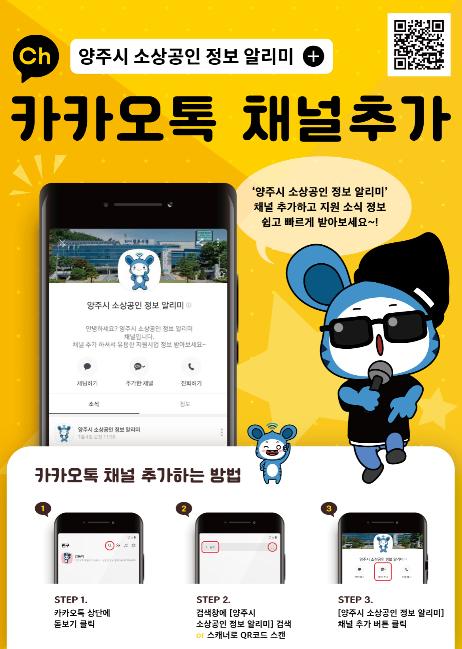 양주시는 코로나19 비대면 온택트 행정의 일환으로 다양한 소상공인 지원사업의 신속한 정보 전달을 위해 ‘양주시 소상공인 정보 알리미’ 카카오톡 채널을 개설·운영한다.