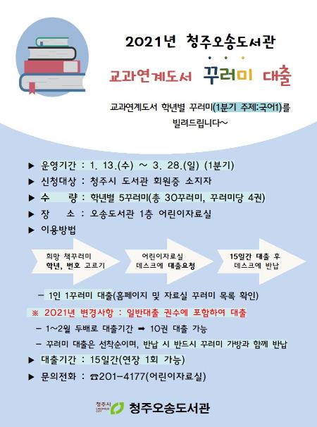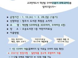 청주오송도서관과 흥덕도서관이 초등학생들의 교과능력 향상과 도서관 소장도서 대출 활성화를 위해 1월부터 3월까지 1분기 교과연계꾸러미 대출 ‘북티처’를 운영한다.