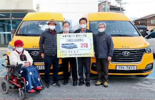 지난 13일 합천군은 합천군 종합사회복지관 별관 앞에서 특별교통수단 콜택시 2대를 위탁운영기관인 경남 지체장애인 협회 합천군 지회에 전달했다.