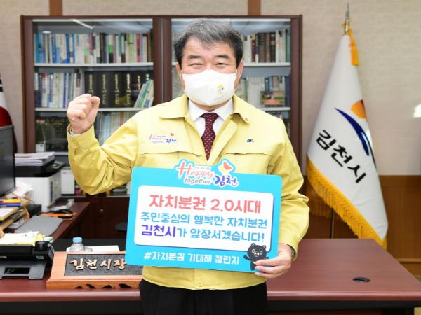 김충섭 김천시장은 자치분권 2.0시대 개막을 응원하기 위해 ‘자치분권 기대해 챌린지’에 동참했다고 13일 밝혔다.