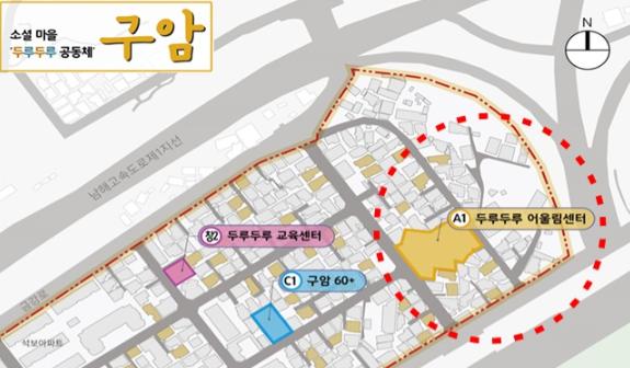 두루두루 어울림센터 조성사업은 구암지구 도시재생 뉴딜사업 중 핵심사업으로 구암1동 행정복지센터의 행정기능, 공동육아나눔터 등 돌봄시설, 맘랩(공동육아 프로그램, 엄마모임방 등 운영), 하우징랩(일자리 창출, 집수리 교육 등 운영)의 주민 교육프로그램 등의 공간 조성을 통해 지역 내 주민 전체와 세대 구분 없는 화합의 장을 마련하기 위해서다.