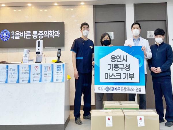 용인시 기흥구는 지난 12일 신갈동 소재 연세올바른통증의학과의원서 어려운 이웃에 전해달라며 마스크 3000장을 기탁했다고 밝혔다.