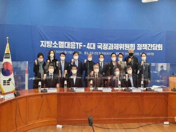 젊은 층을 중심으로 한 수도권으로의 인구이동, 지역사회 고령화와 코로나19 여파로 출산률 감소 등의 상황에서 지방소멸 위기에 대한 대응책을 마련하고, 국가 균형발전의 토대를 만들어가기 위해 더불어민주당 지방소멸대응 태스크포스와 국정과제 4대 위원회 간의 정책 간담회가 13일 오전 10시 30분, 국회 본관 더불어민주당 원내대표회의실에서 개최되었다.