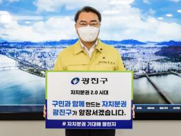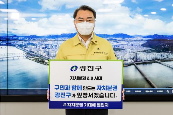 이정훈 강동구청장의 지명으로 챌린지에 참여한 김선갑 광진구청장은 ‘구민과 함께 만드는 자치분권, 광진구가 앞장서겠습니다’라는 응원 메시지를 전했다.