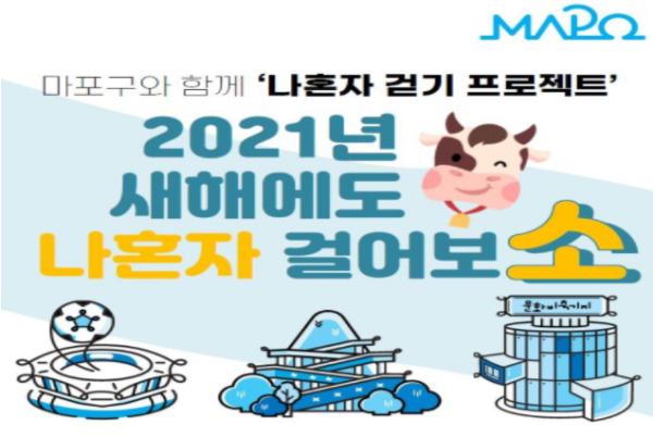 마포구는 신종 코로나바이러스 감염증(코로나19)의 장기화로 인한 주민들의 신체적?정신적 스트레스 감소와 면역력 향상을 위해 2021년 ‘새해에도 걸어보소 나 혼자 걷기 프로젝트’를 비대면으로 운영한다고 밝혔다.