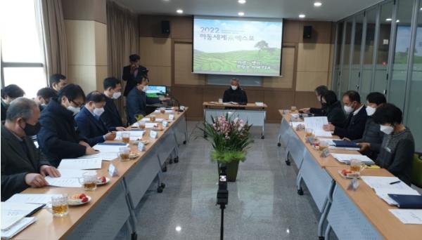윤상기 군수는 지난 13일 화개면 다향문화센터에 자리를 잡고 1월 초부터 본격적인 업무를 시작한 하동세계차엑스포조직위원회 사무처를 방문했다.