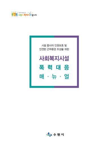 수원시는 사회복지시설 종사자의 안전한 근무환경 조성과 인권 보호를 위해 ‘사회복지시설 폭력대응 매뉴얼’을 제작, 수원지역 사회복지시설 200개소에 배포했다.