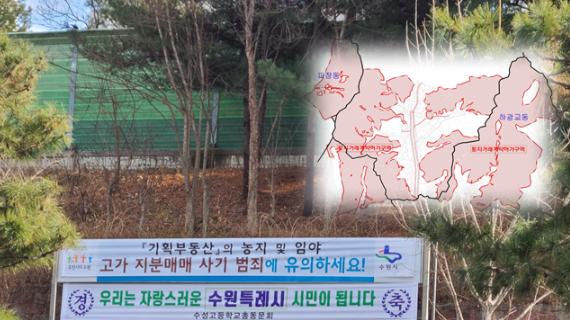 이에 따라 수원시는 기획부동산 사기 피해를 방지하기 위해 “농지·임야 등의 고가 지분 거래(쪼개기 분양)에 주의하라”는 내용을 게시한 현수막을 토지거래허가구역 주변 곳곳에 게시해 시민들의 주의를 당부했다.