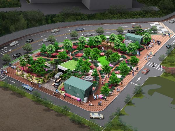 상단부는 조경수목이 어우러져 있고, 벤치와 산책로 등을 갖춘 소공원으로 주민들에게 개방된다.