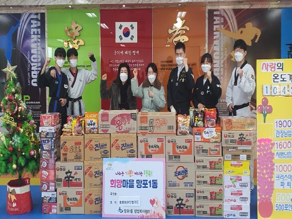 전달한 후원물품은 충효태권도합기도장에서 도장 내 사랑의 온도계를 설치하고‘사랑의 라면트리 만들기’를 진행해 원생들이 십시일반 모은 것이다.