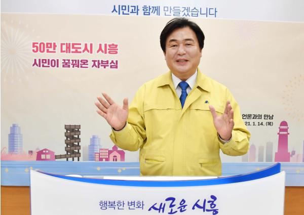 임병택 시흥시장이 14일 ‘2021년 신년맞이 언론과의 만남’을 개최하고, 50만 대도시 시흥의 비전을 밝혔다. 이번 기자회견은 코로나19 지역 감염 확산 방지를 위해 비대면으로 진행됐으며, 전 과정이 유튜브를 통해 생중계됐다.