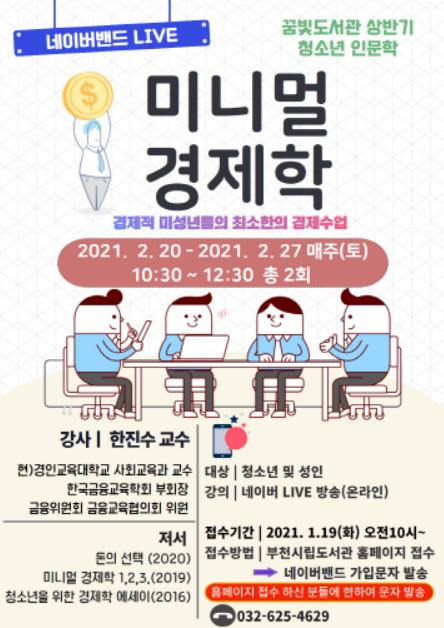 부천시립꿈빛도서관에서는 겨울방학을 맞아 경제학에 쉽게 접근할 수 있도록 한진수 교수의 '미니멀 경제학' 저자 특강을 온라인으로 진행한다.