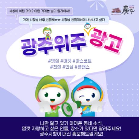 ‘광주위주 광고’는 나만 알고 있기 아까운 동네 소식, 맘껏 자랑하고 싶은 인물, 장소를 남기면 광주시가 대신 홍보해 주는 이벤트이다.