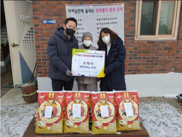 의정부시 송산1동주민센터는 용현동 소재 수락사가 1월 13일 송산1동 취약계층을 위해 써달라며 쌀(10kg) 15포을 기탁했다고 밝혔다.